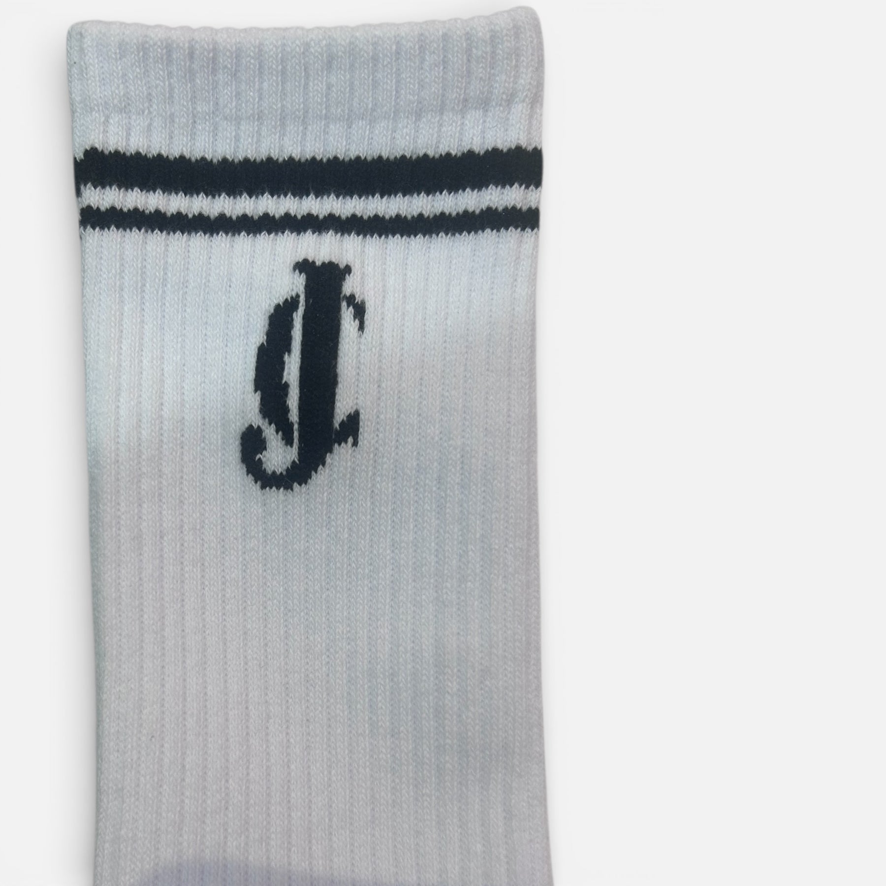 • Classic White JC London logo with two white stripes